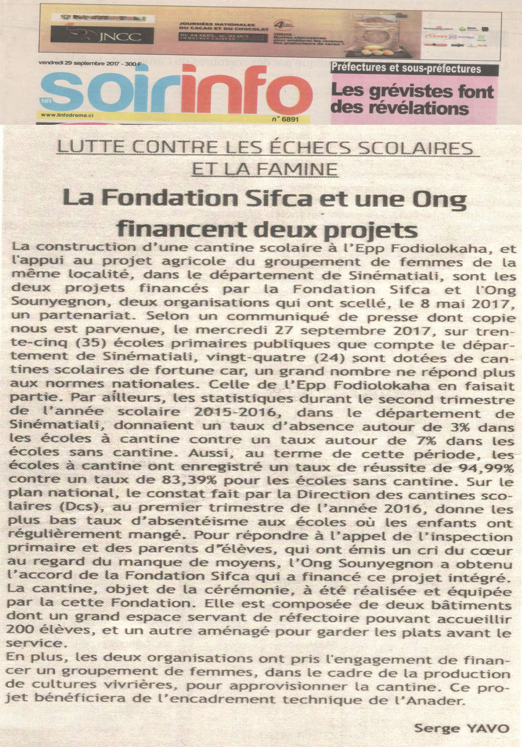 A la suite des difficultés liés à la crise de 2002 en côte d'ivoire , les populations en particulier celles du nord avaient du mal à s'approvisionner en eau potable, avoir acces à des services de soins et à un minimum pour leur bien etre L'ONG sounyegnon qui signifie le bien est une organisation de cadres du nord qui a vu le jour le 27 avril 2005 sous le récépissé de declaration n° 247/MEMA/DGA/SDVA, lu conferant ainsi sa forme legale. Elle a pour objectif d'entreprendre toutes actions sociales et humanitaire visant à assurer le bien-être des populations en detresses. Généralement elle s'engage dans toutes activités dans les domaines suivantes: