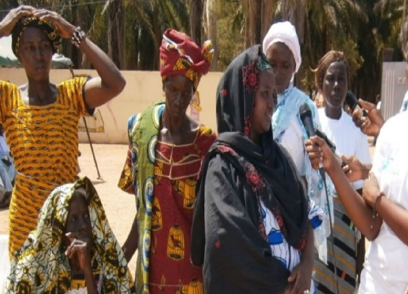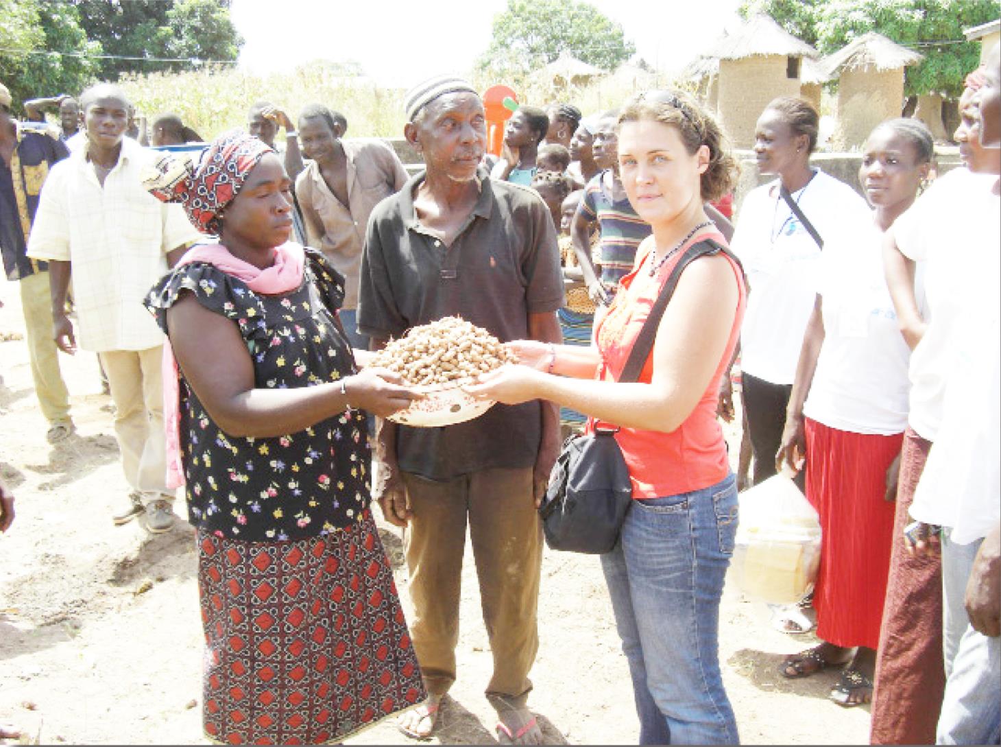 PHOTO DE FAMILLE AVEC CAROLLE BESH AU MILIEU LORS D'UNE RÉCOLTE D’ARACHIDE