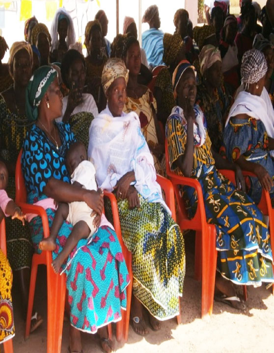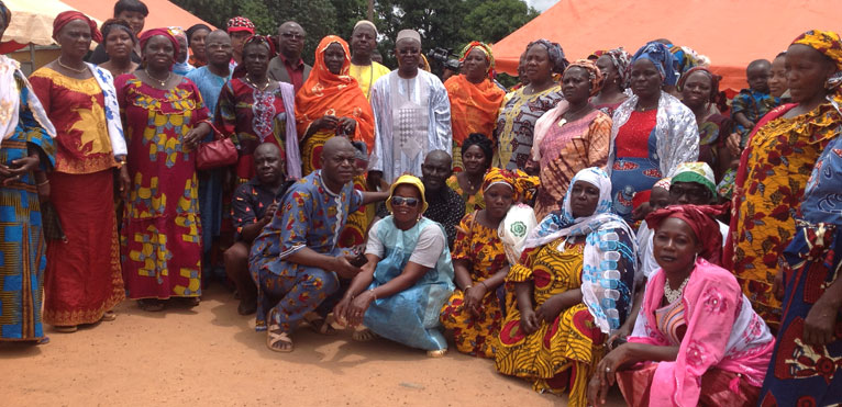 LA PHOTO DE FAMILLE DU PCA DE L'ONG SOUNYEGNON AVEC LES FEMMES DE L'ASSOCIATION FARANIKA DE WOLO LORS DE LA CEREMONIE DE REMISE D'UN TRICYCLE GRAND FORMAT