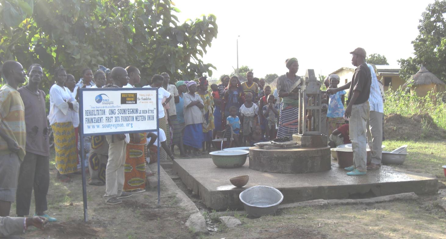 L’ONG Sounyegnon avec l’appui des bailleurs (Fondation Western Union et Fondation Orange Côte d’Ivoire) avait réhabilité 101 pompes durant cette période, pour une population bénéficiaire de 29 864 personnes. L’eau source de vie et de santé, est la Priorité N°1 dans le Monde.